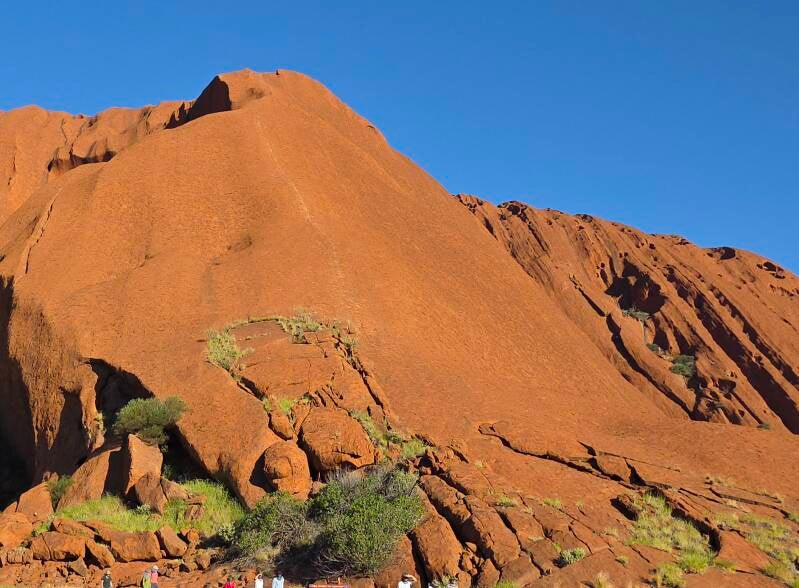 Der Uluru ist für die Aborigines ein heiliger Ort. Nach jahrelangem Kampf um Land und kultureller Anerkennung wurde er 1985 an die Anangu-Aborigines wieder zurückgegeben und kommerziellen Tourismusangebote entfernt. Aber erst seit 2019 ist auch der Aufstieg der Touristen auf den Uluru verboten. Bis dahin konnte man sich an der flachsten Stelle an einer Metallkette auf den Felsen "hochziehen".